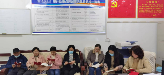 2022年11月17日,审计处支部全体党员在“11月支部主题党日”集中学习中国共产党第二十次全国代表大会通过的新党章。