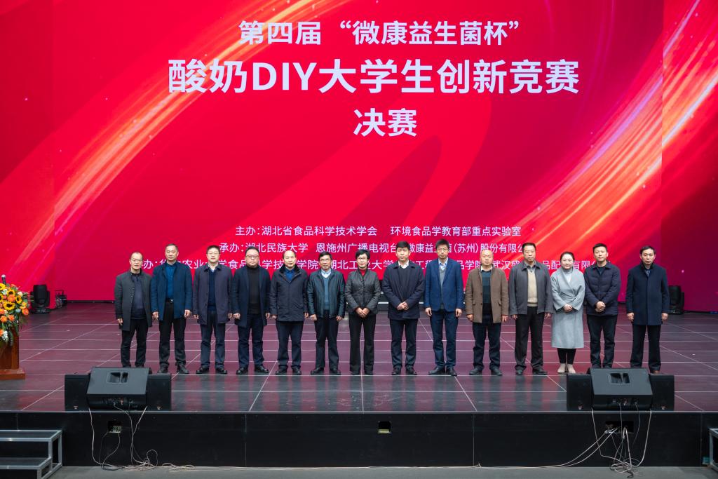 本网讯(文字 余胡铃澜 摄影 李经玺 余胡铃澜)12月11日,第四届 “微康益生菌杯”酸奶DIY大学生创新竞赛总决赛在恩施州电视台演播厅成功举办。恩施州副州长高敬佩,学校副校长李军,湖北省食品科学技术学会理事长潘思轶,微康益生菌(苏州)股份有限公司市场总监方端,华中农业大学食科院党委副书记向异之,Beat365宣传部、教务处、学工处、校团委等职能部门负责人出席大赛开幕式。湖北大学、长江大学、武汉商学院等十多所高校领导、老师带队现场观摩本次大赛。