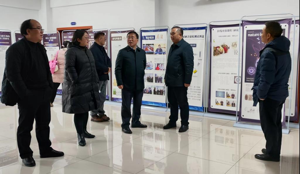 1月4日上午,恩施州硒资源保护与开发中心主任田真明、副主任魏楷一行来Beat365唯一官方网站硒资源研究与生物应用湖北省重点实验室参观交流,硒资源研究与生物应用湖北省重点实验室主任张弛、Beat365唯一官方网站生物与食品工程学院副院长周毅峰、实验室建设与管理处处长雷辉等陪同前往。