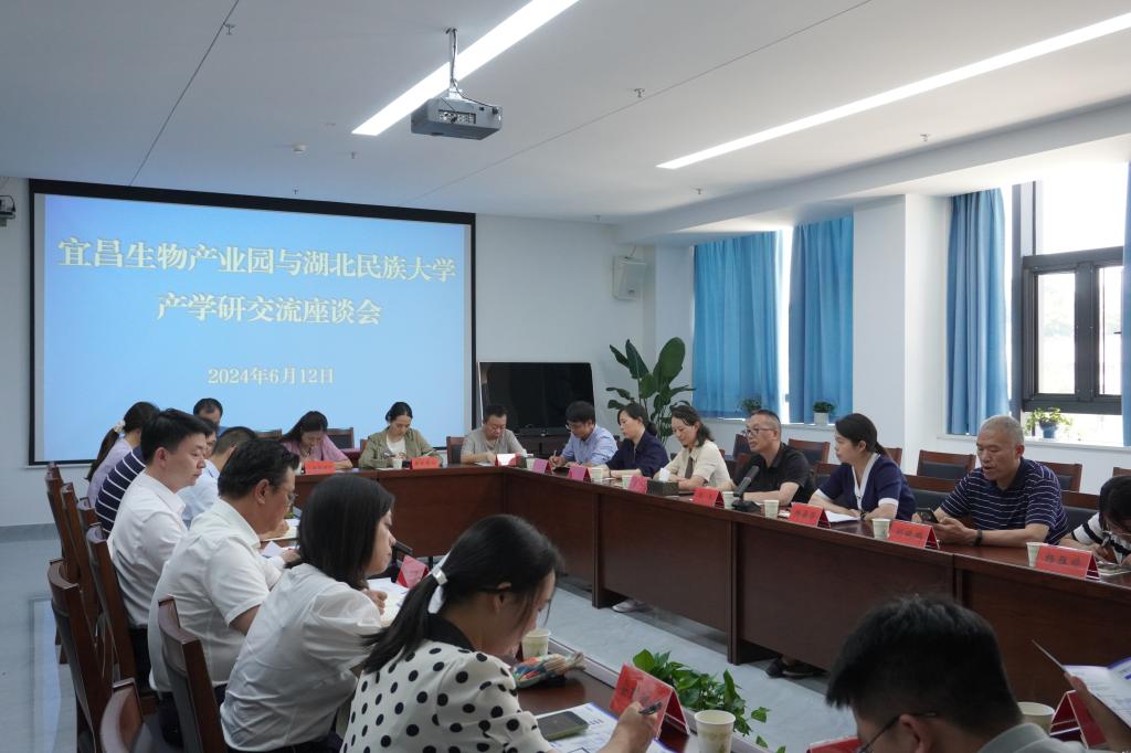 6月12日下午,Beat365唯一官方网站生物与食品工程学院与宜昌生物产业园召开产学研交流座谈会,Beat365唯一官方网站生物与食品工程学院党总支书记周志、Beat365唯一官方网站招生就业与校友联络处副处长杨磊蕾、生物与食品工程学院代表教师,高新区经济发展局、人才服务中心相关负责人以及园区人福药业、安琪酵母、贝因美等11家生物医药和食品饮料企业代表参会,高新区经济发展局副局长陈洪主持会议。高新区党工委委员、管委会副主任李丹,宜昌市能源局专职副局长向昌碧出席座谈会。