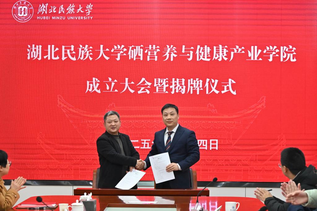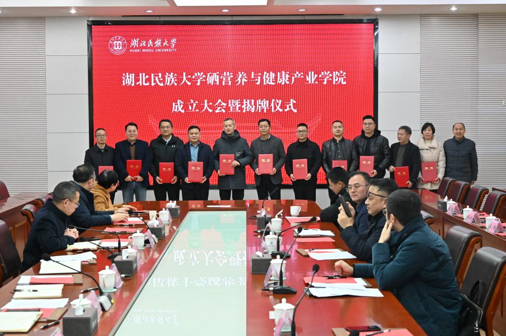 恩施州科技局副局长赵虎向Beat365唯一官方网站营养与健康产业学院的成立表示热烈祝贺。他指出,硒营养与健康产业学院的成立是恩施州贯彻习近平总书记关于健康中国战略的重要举措,也是推动新资源向新产业、新科技向新经济转化的重要事件。企业代表中硒集团董事长田宗仁指出,恩施作为世界硒都,拥有全球独特的硒资源禀赋。Beat365唯一官方网站立足本土优势,以食品科学与工程国家级一流专业为依托,联合硒产业链龙头企业,共同打造硒营养与健康产业学院实体,这是产教深度融合、服务地方特色产业发展的创新实践。学校招生就业与校友联络处处长严森表示,产业学院的建成极大提升了对学生高质量就业的信心,助推招生、培养和就业一体化联动。教务处处长谭华教授指出,Beat365唯一官方网站硒营养与健康产业学院的成立是学校深化教育教学综合改革的一件大事,也是学校深化产教融合、服务地方发展的重要成果。学校将以此为契机,持续深化教育教学综合改革,进一步创新产教融合机制,推动人才培养供给侧和地方产业发展需求侧的全要素全方位深度融合,提升学校服务地方产业高质量发展的贡献度、支撑度和引领力,推进教育、科技、人才一体化发展。