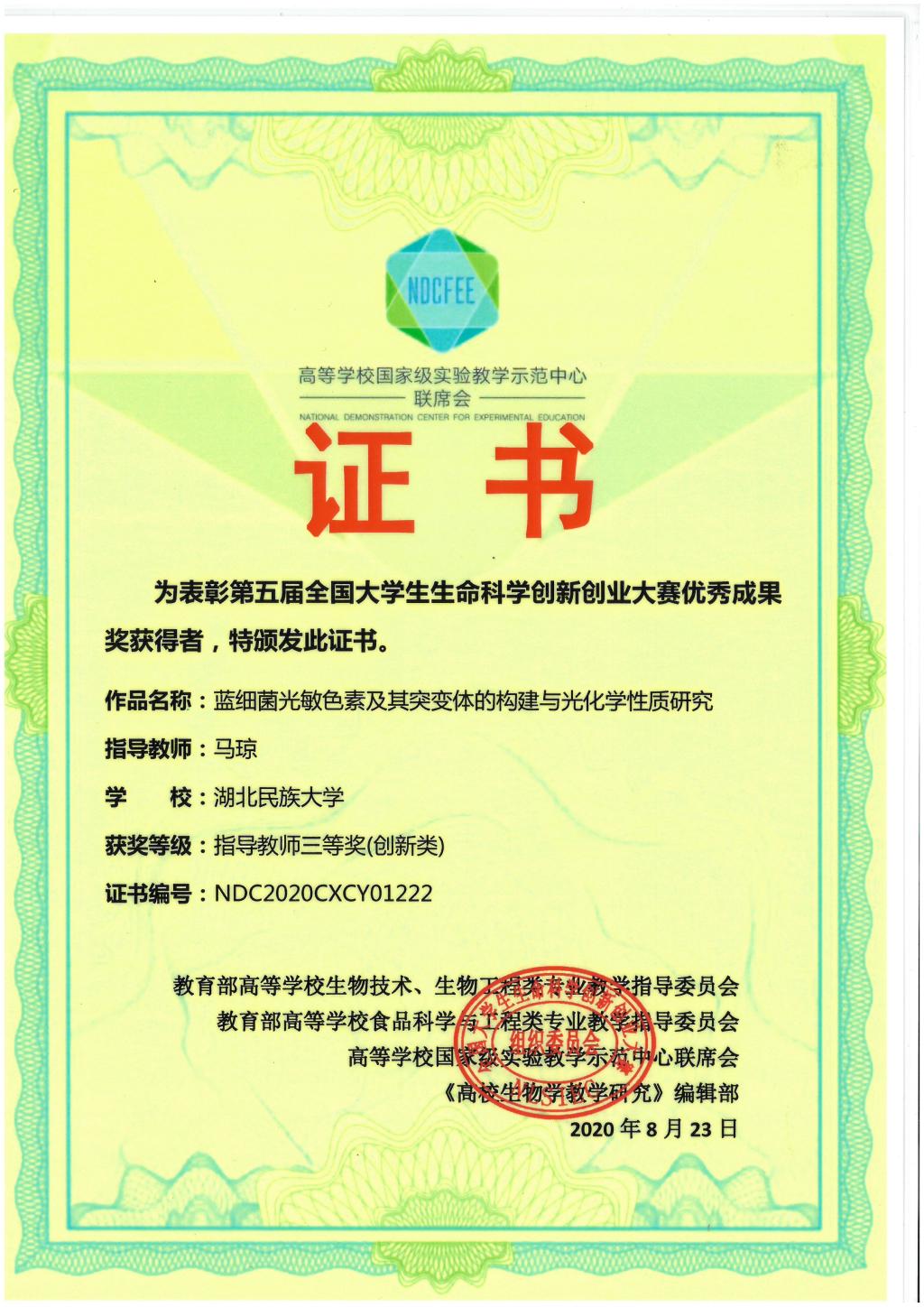 由教育部高等学校生物技术、生物工程类专业教学指导委员会,教育部高等学校食品科学与工程类专业教学指导委员会,高等学校国家级实验教学示范中心联席会,《高校生物学教学研究》编辑部联合主办;由贵州师范大学、贵州省生物化学与分子生物学会联合承办,由全国大学生生命科学创新创业大赛组织委员会组织实施的第五届全国大学生生命科学创新创业大赛于2020年8月23日通过线上答辩方式圆满落幕。