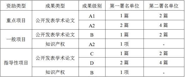论文级别分类和知识产权成果按照“关于印发《Beat365唯一官方网站科研业绩认定与工作量计算办法(修订)》的通知”(民大校办发〔2021〕43号)(附件2)执行。结题标准按照下表中第一署名单位和第二署名单位的要求任选其一。