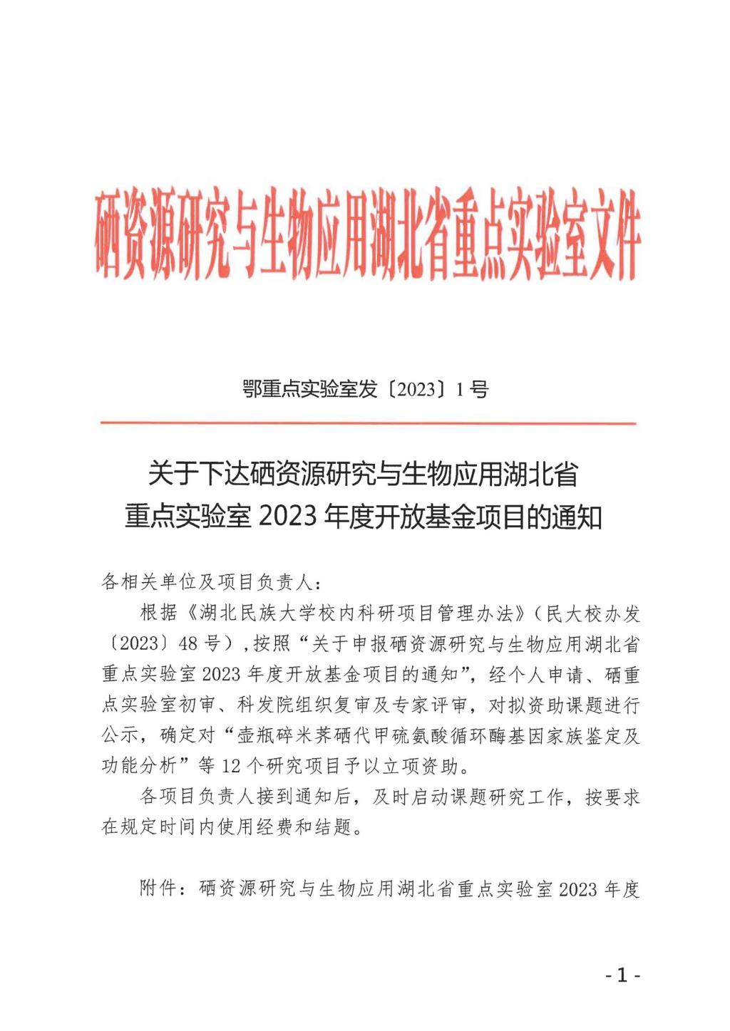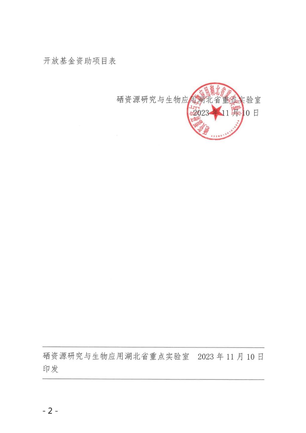 附件:硒资源研究与生物应用湖北省重点实验室2023年度开放基金资助项目表.pdf