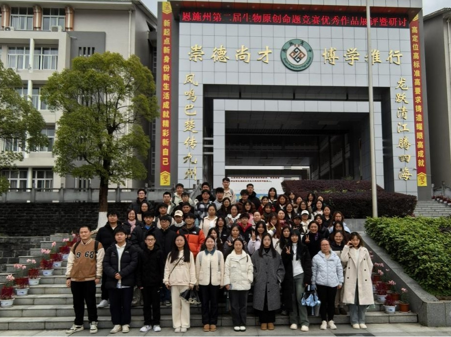 本网讯 12月5日,为促进我院生物科学专业师范生教学技能的提升,生物科学专任教师带领2022级生物科学专业全体学生前往恩施高中参加2024年恩施州普通高中第二届原创命题竞赛生物学科优秀作品展评暨命题技术研讨活动。
