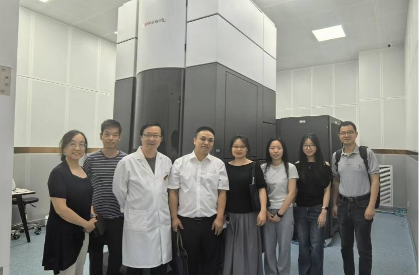 湖北大学生命科学学院科研实验平台参观 与在湖北大学生命科学学院读硕的毕业生校友在冷冻电镜前合影