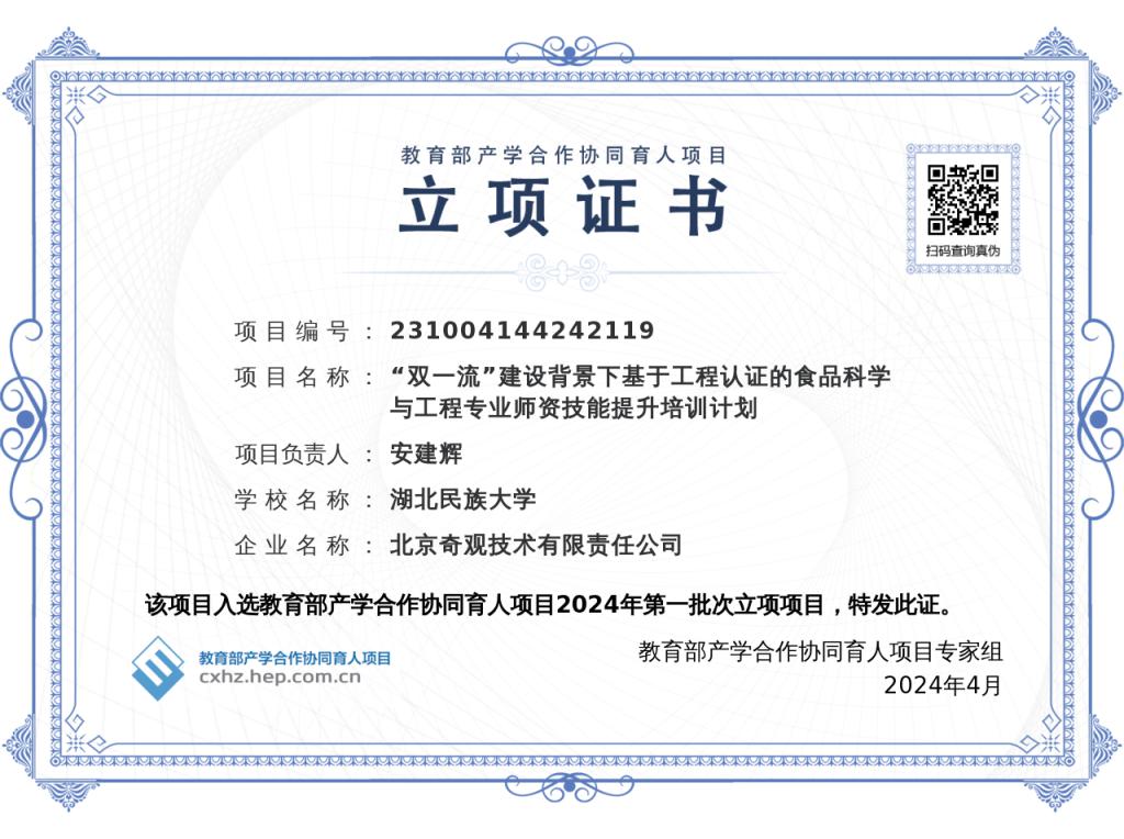 近日,教育部高等教育司下发《教育部高等教育司关于公布2024年第一批产学合作协同育人项目立项名单的通知》,Beat365共获批19项。我院安建辉申报的《“双一流”建设背景下基于工程认证的食品科学与工程专业师资技能提升培训计划》喜获立项。
