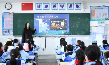 在五年级一二班的教室中,志愿者们通过精致详细的PPT,从健康饮食的重要性、培养健康饮食习惯、食品安全防范措施、互动实践四个环节循循善诱、细致入微地向同学们介绍了正确的饮食习惯与基础的食品安全知识,同时借助实物图与视频,充分调动了学生们的积极性,让同学们在饮食与健康上有了更深的认识。