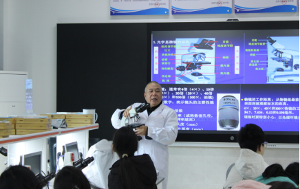 在活动现场,张建新对显微镜的构造、原理以及使用方法进行了详细讲解。从目镜、物镜的功能到粗准焦螺旋、细准焦螺旋的操作要点,老师一一耐心阐释。