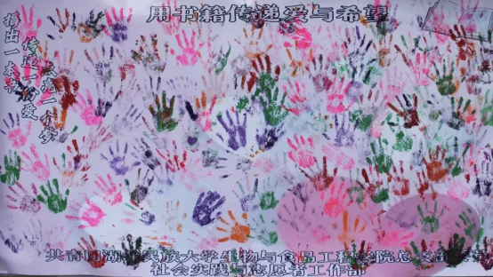 在“手”护希望环节,广场上的展板格外醒目。同学们纷纷来到展板前,庄重地按下自己的手印。这些手印色彩斑斓,它们代表着每一个人的爱心,手印汇聚在一起,形成一幅充满力量的画卷,仿佛在向乡村儿童传递着大家的支持与鼓励,让他们感受到有无数的力量在背后为他们加油。