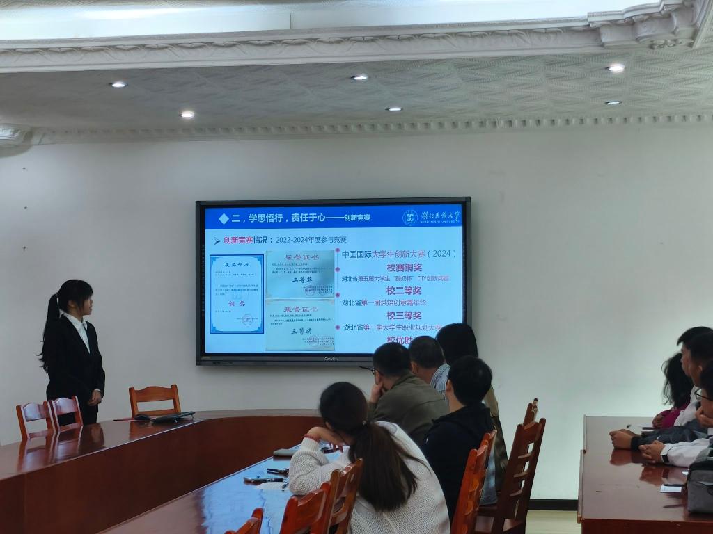 本网讯(通讯员 罗宜晗 /文 图 )为广泛宣传、积极动员,推选出真正具有引领示范作用的生工院榜样,我院于10月10日上午九点在二楼会议室举办2023-2024学年国奖答辩会。我院教学科科长卢婵、学生科科长陈杰、学生科辅导员曾思琪、团总支书记程琴、生物实验教学示范中心高级实验师周光来及部分学生代表担任评委。