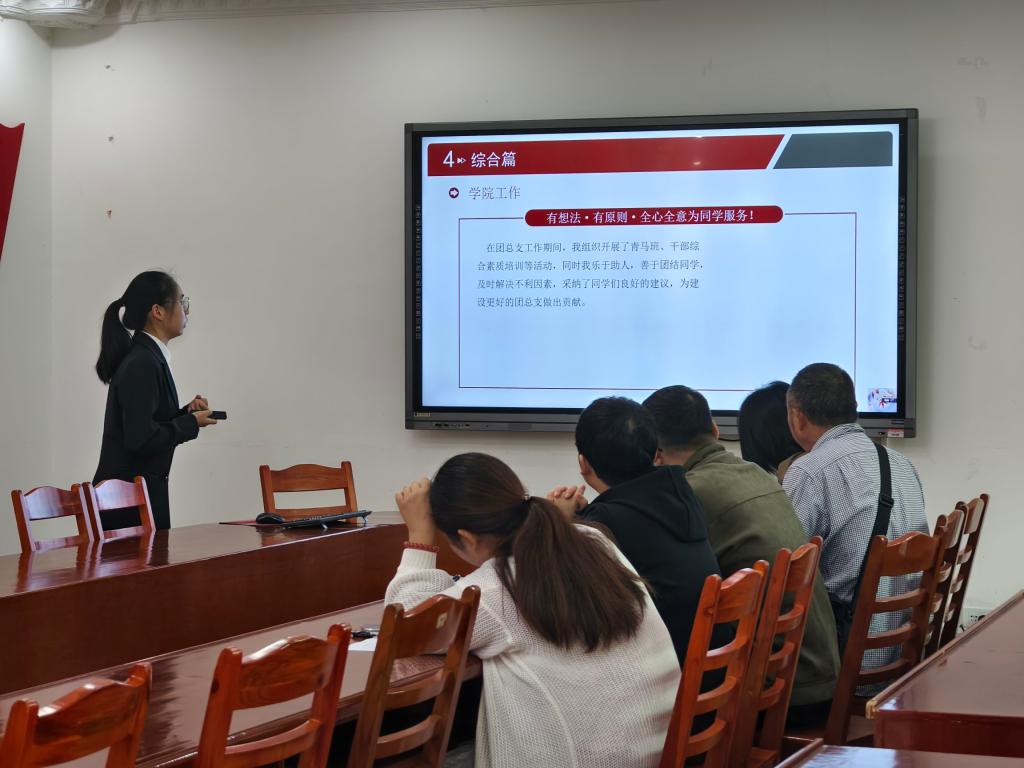 答辩会上,三位候选人沉着冷静、侃侃而谈,充分展现自己的表达能力、逻辑思维能力和应变能力。
