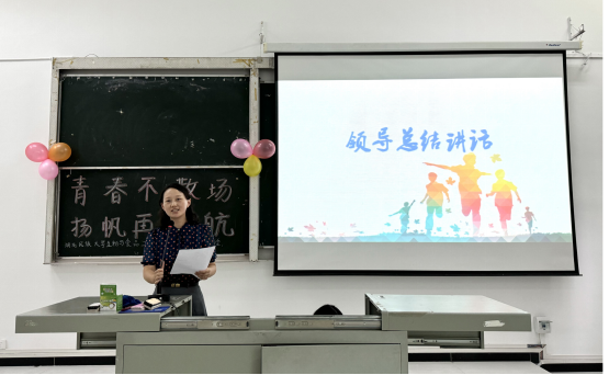 最后,彭璟上台发表总结讲话。她高度评价毕业生们在校期间的表现和成就,并对他们未来的发展提出殷切期望。彭书记鼓励毕业生们要保持对知识的渴望和对生活的热爱,不断提升自己的综合素质,为社会的发展贡献自己的力量,也祝愿他们前程似锦,未来在各自的岗位上继续发光发热。