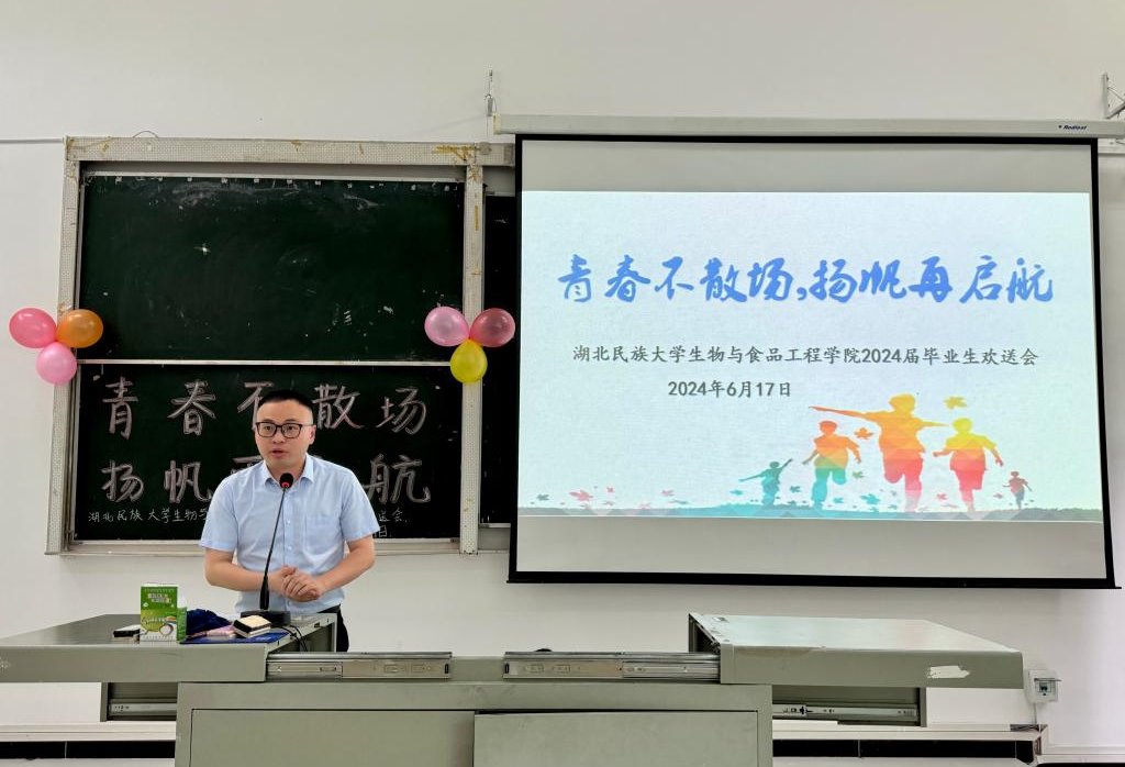 本网讯(通讯员 莫晓妮/文 徐郡/图)为送别即将踏上新征程的毕业生们,表达对他们未来的美好祝愿,6月17日下午,我院在4202教室举行2024届毕业生欢送会。生物与食品工程学院党总支副书记彭璟、学生科辅导员曾思琪、毕业班班主任陈杰、杨婷雅、卢婵、张鑫媛,以及全体在校毕业生参加。学生科科长陈杰主持本次会议。