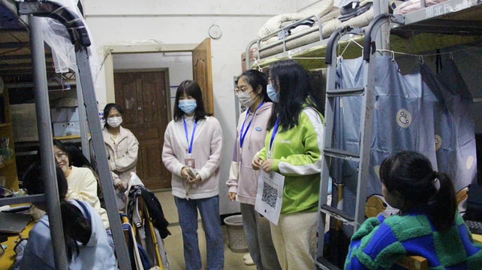 心协和公管会成员分为五个小组,分别前往立人六栋和达人一栋公寓楼对我院所有大一寝室进行走访,和同学们进行友好的交流,了解到同学们在寝室的日常生活状态以及存在的小问题,并及时答疑解惑。公管会的成员说:“寝室安全尤为重要,我们要做到人走断电、随手锁门,如果遇到寝室方面的问题可以随时联系公管会的成员。”接着,走访人员介绍学校的心理咨询中心和心协的“树洞”功能,让同学们在遇到心理健康问题时有倾诉的地方。走访中,新生与学生干部积极交流并反映存在的问题,新生表示这次走访活动感受到了关怀,增强了寝室成员之间的凝聚力,也会更快的适应和融入大学的宿舍生活。