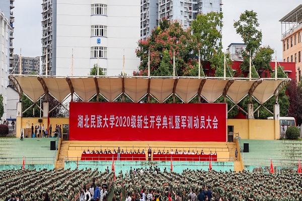 党委书记吴建清为军训团授旗党委副书记、校长顿祖义致辞党委副书记、副校长汪兴平主持开学典礼党委常委、副校长祝建波宣读军训团成立文件教师代表邓伶俐发言优秀校友代表汪灵海发言恩施州武警支队长宋强发布军训命令教官代表谢理想发言开学典礼现场本网讯(记者 张宏迪 通讯员 姜文佳 王语/文 武建鑫 武叶叶/图)9月21日,2020级本科新生开学典礼暨军训动员大会在五环体育场举行,学校党委书记吴建清,党委副书记、校长顿祖义,...
