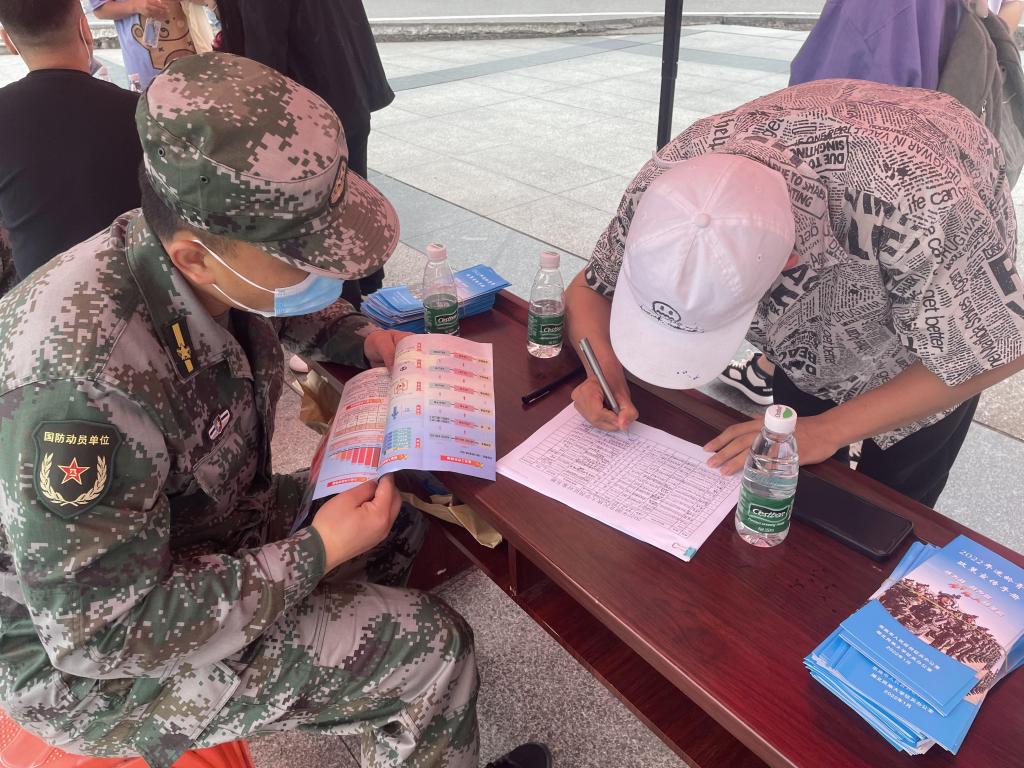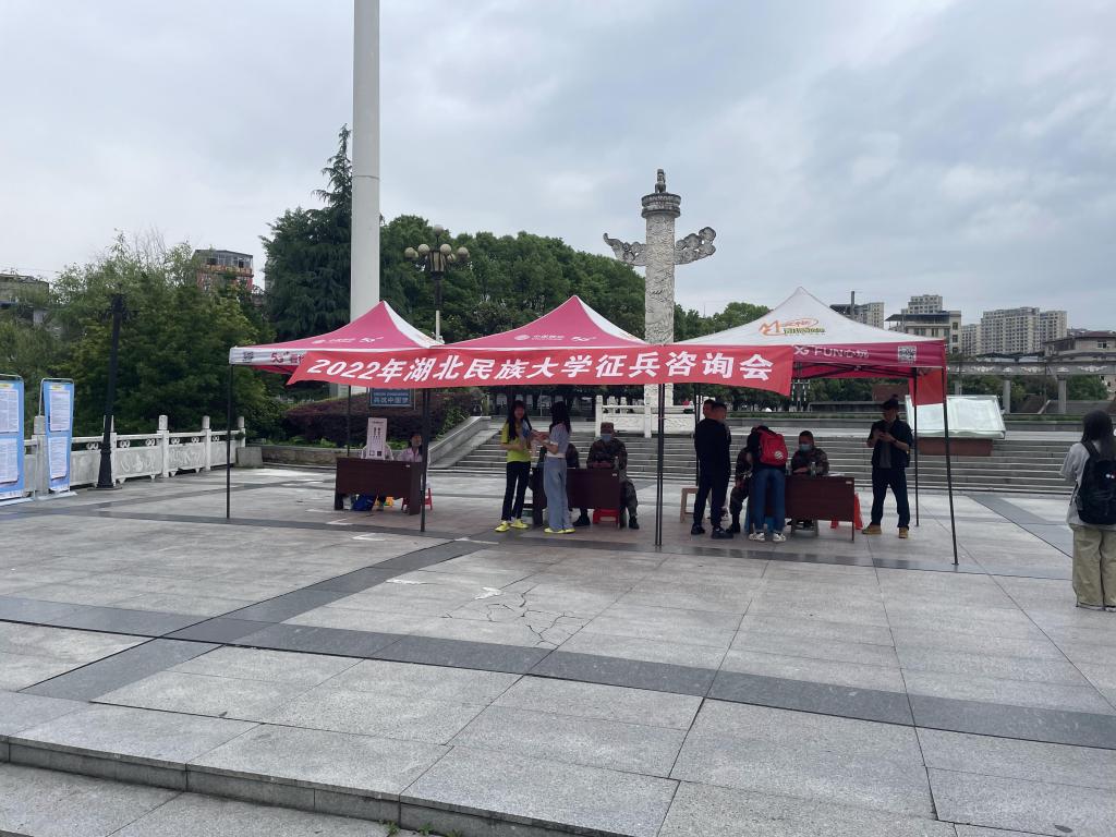 (通讯员:曾飞翔)为激发大学生参军热情,深入宣讲应征入伍政策。2022年5月13日上午,学校武装部会同恩施市人民武装部在大学生广场开展了2022年秋季征兵咨询会,学校电视台也应邀参加。恩施市人武部军事科科长詹雪凯、市征兵办工作人员为意向入伍学生作了较为全面的征兵政策解答及现场报名指导。电视台采访了学校征兵宣传员蔡鹏鹏、向延武(退役复学学生),两人从个人学习生活经历、思想成长变化、在部队锻炼收获等方面做了详细介绍。