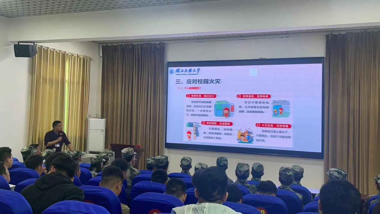 为进一步宣传消防知识,增强学生消防安全意识,提升学生火场逃生自救互助和处置初期火情的能力,4月12日,保卫处联合恩施市消防大队对校卫队、军事爱好者协会成员进行了消防知识培训和灭火实操演练,120余人参加了培训。