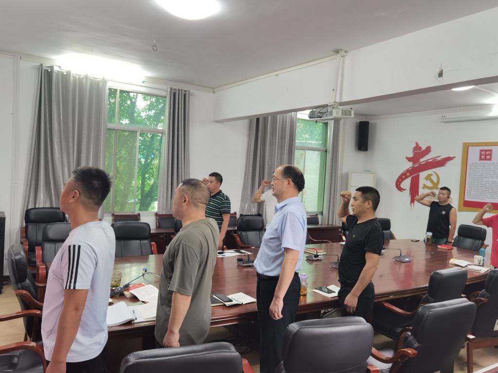 全体党员面向党旗重温誓词,感悟初心使命,锤炼党性修养。