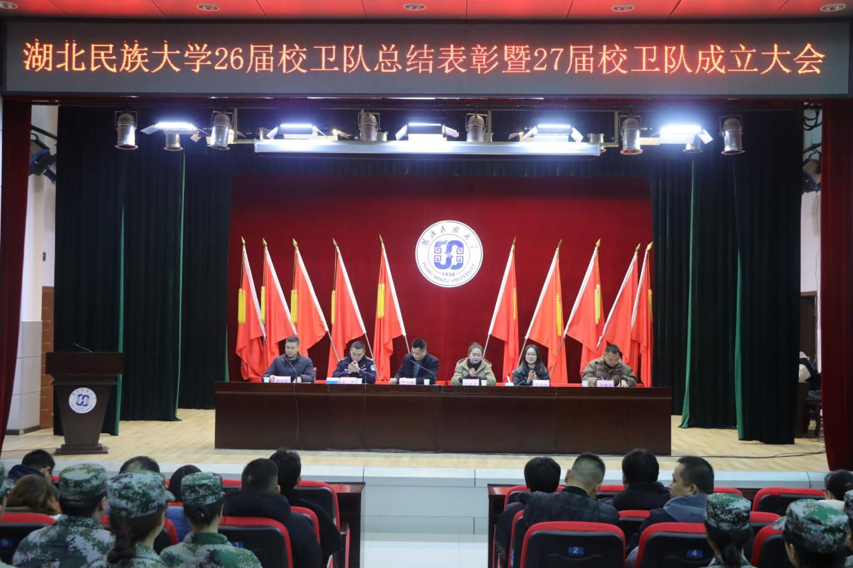 12月21日,Beat365唯一官方网站第26届校卫队总结表彰暨第27届校卫队成立大会在行政楼一号会议室隆重举行。学校党委委员、学工部长方云霞,保卫工作部(武装部)部长周代明,驻校民警王烁,校团委副书记刘亚琼,保卫工作部(武装部)副部长李建华出席会议,与会的还有各学院学生科负责人,保卫工作部全体职工,以及学校各社团负责人。会议由保卫工作部(武装部)副部长何永红主持。