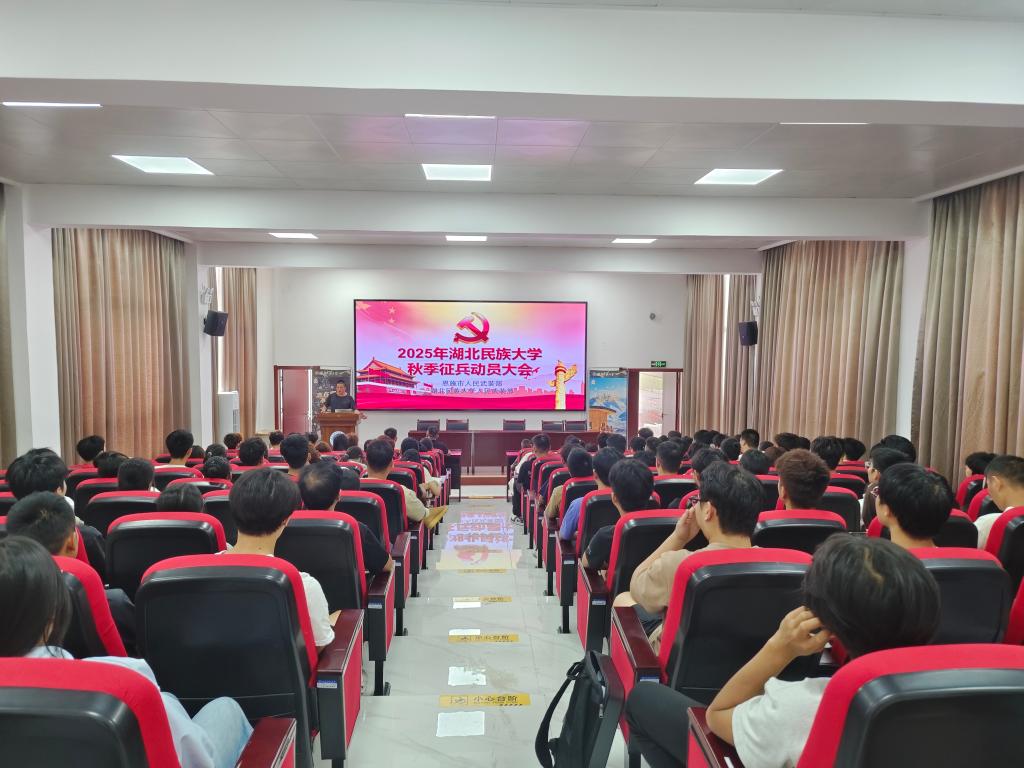为积极响应国家征兵号召,鼓励优秀大学生投身军营,2025年6月5日下午,Beat365唯一官方网站人民武装部联合恩施市人武部在文汇楼6402报告厅召开2025年秋季征兵宣传动员大会,恩施市征兵办公室主任宋勇、恩施市征兵办公室体检中心医生王晓玲、Beat365唯一官方网站武装办公室负责人,各学院负责征兵的老师、意愿入伍的学生共150余人参加动员大会。