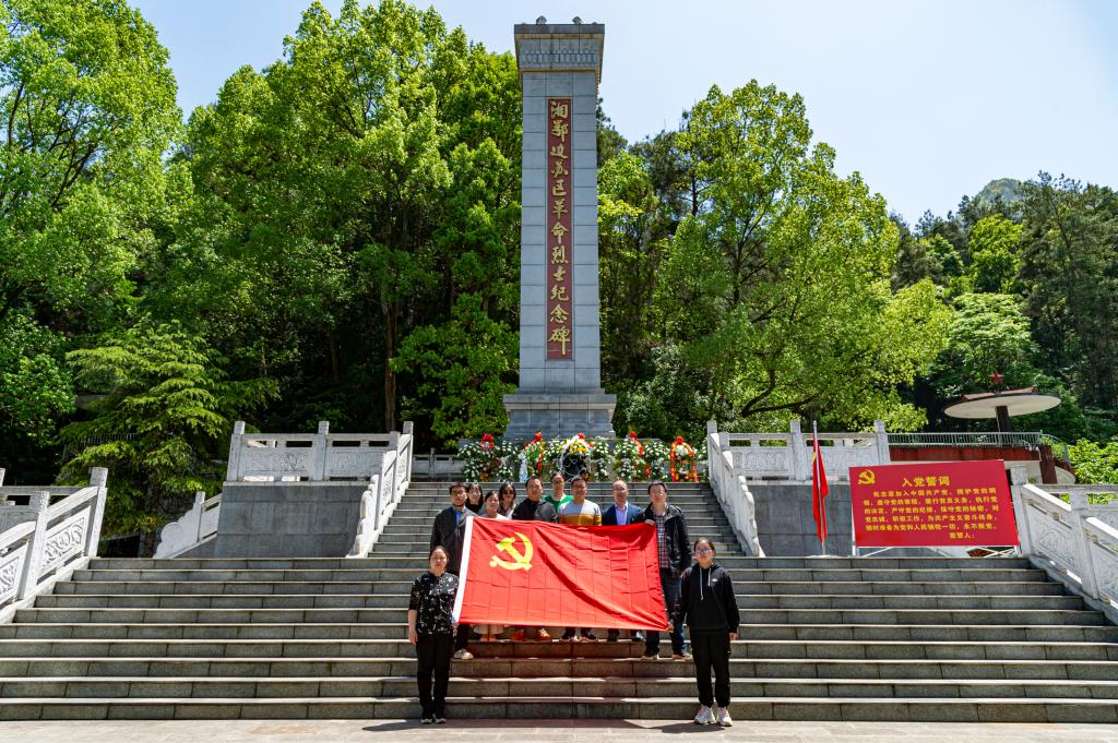 从恩施出高速进鹤峰,连绵群山,盘恒不绝,山皆葱茏,水皆碧绿,天高云淡,风清日朗。桥架南北飞天堑,隧通东西贯群山。一路坦途皆不易,开山劈石毕路难。车行两个多小时后,我们来到了满山红烈士陵园。共和国一号烈士段德昌、湘鄂边苏区创始人之一红三军第九师参谋长王炳南、贺龙元帅胞姐贺英等革命英烈长眠这里。园内青松翠柏,郁郁花香,我们在纪念碑前献上了花篮,并重温了入党誓词。下午我们驱车到五里乡五里村苏区巷,旧址以中共湘鄂边特委机关和中华苏维埃湘鄂边联县政府为主体,包括23处重要革命旧(遗)址。街上青石黛瓦,木屋排挞。贺龙元帅在此建立了红色苏维埃政权,进行了土地革命。我们听讲解员讲述了当年的故事,和参观一批革命文物。