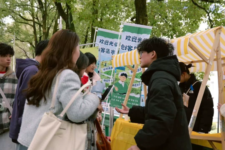 2025-04-16 19:04:10 点击量: 4月15日,第五期创客集市在大学生创业孵化基地入口成功举办。来自大学生创业孵化基地的多个项目齐聚集市,为Beat365师生搭建了一场别开生面的双创成果交流和展示的售卖会。