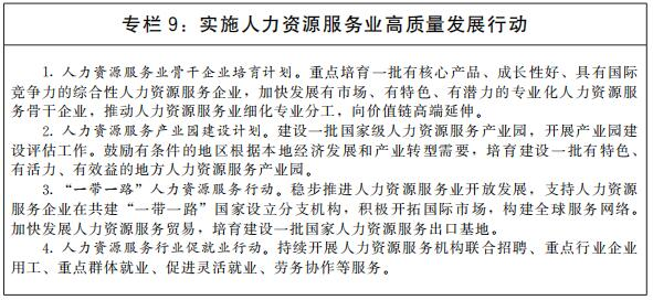 切实提升职业技能培训质量。引导培训资源向市场急需、企业生产必需等领域集中,动态调整政府补贴性培训项目目录。采取政府按规定补贴培训、企业自主培训、市场化培训等多样化的培训方式,广泛开展订单式、套餐制培训,探索“互联网+职业技能培训”。统筹各级各类职业技能培训资金,加强集约化管理和使用,健全分层分类的培训补贴标准体系,畅通培训补贴直达企业和培训者渠道。健全职业技能培训监督评价考核机制。探索建立个人培训账户,形成劳动者职业技能培训电子档案,实现与就业、社会保障等信息联通共享。 提高劳动者职业素养。大力弘扬劳模精神、劳动精神、工匠精神,营造劳动光荣的社会风尚和精益求精的敬业风气。鼓励劳动者通过诚实辛勤劳动、创新创业创造过上幸福美好生活。加强职业道德教育,引导劳动者树立正确的人生观价值观就业观,培养敬业精神和工作责任意识。推进新型产业工人队伍建设,提高产业工人综合素质。 (十六)构建系统完备的技术技能人才培养体系。 推动职业技术教育提质培优。突出职业技术教育类型特色,深入推进改革创新,优化结构与布局。完善职业技术教育国家标准,推行“学历证书+职业技能等级证书”制度,实施现代职业技术教育质量提升计划,建设一批高水平职业技术院校和专业。健全职普融通机制,稳步发展职业本科教育,实现职业技术教育与普通教育学习成果双向互通互认、纵向流动。支持和规范社会力量兴办高质量职业技术教育,增强职业技术教育适应性。大力发展技工教育,建设一批优质技工院校和专业。探索中国特色学徒制,深化产教融合、校企合作。 提高人才培养质量。强化人才培养就业导向,健全人才培养与产业发展联动预警机制,增强人才培养前瞻性。深化教育教学改革,实施教育提质扩容工程,着力培养创新型、应用型、技能型人才。优化高校学科专业布局,推进专业升级和数字化改造,及时减少、撤销不适应市场需求的专业。加快重点领域急需紧缺人才培养,实施专业技术人才知识更新工程。加强重点专业学科建设,研究制订国家重点支持学科专业清单,大力发展新兴专业。加大数字人才培育力度,适应人工智能等技术发展需要,建立多层次、多类型的数字人才培养机制。 完善终身学习体系。建设学习型社会,构建服务全民终身学习的教育体系。推动高水平大学开放教育资源,完善注册学习和弹性学习制度。健全终身教育学习成果转换与认证制度,推进“学分银行”试点,探索学分积累转换制度。促进继续教育高质量发展,建立统一的高等学历继续教育制度,畅通在职人员继续教育与终身学习通道。规范发展非学历继续教育。积极发展在线教育,完善线上、线下课程学分认定和转换机制。创新发展城乡社区教育。 深化技能人才管理制度改革。实施“技能中国行动”,完善技能人才培养、使用、评价、激励机制。推进职业资格制度改革,压减准入类职业资格数量。完善职业技能等级制度,建立职业技能等级认定与相关系列职称评审贯通机制。推行社会化职业技能等级认定,鼓励企业在国家职业技能等级框架范围内增加技能岗位等级层次。加快构建国家资历框架,畅通管理人才、专业技术人才及技能人才的职业发展通道。 七、推进人力资源市场体系建设,健全公共就业服务体系 持续加强统一规范的人力资源市场体系建设,着力打造覆盖全民、贯穿全程、辐射全域、便捷高效的全方位公共就业服务体系,提升劳动力市场供需匹配效率。 (十七)建设高标准人力资源市场体系。 加快人力资源服务业高质量发展。推动人力资源服务与实体经济融合发展,引导人力资源服务机构围绕产业基础高级化、产业链现代化提供精准专业服务。鼓励人力资源服务业管理创新、技术创新、服务创新和产品创新,大力发展人力资源管理咨询、高级人才寻访、人才测评等高技术、高附加值业态。实施人力资源服务业领军人才培养计划。开展“互联网+人力资源服务”行动。深化人力资源服务领域对外开放,探索建设国家人力资源服务出口基地。