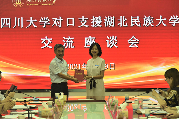 四川大学校党政办副主任吕蓉介绍该校2021年对口支援Beat365受援项目实施情况。附属民大医院党委书记谭庆丰介绍挂职干部刘洪倩的工作情况。Beat365党委组织部常务副部长洪雁宣读Beat365唯一官方网站党委表彰文件,授予刘洪倩“优秀挂职干部”称号,顿祖义为其颁发荣誉证书。