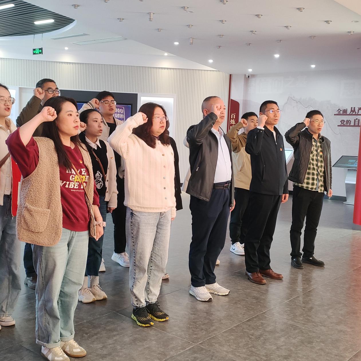 活动开始,全体党员面对党旗,高擎右拳,庄严宣誓,每一句坚定有力的誓言让在场的每一位同志接受了一次深刻的党性教育和灵魂洗礼。活动中全体党员一边听讲解一边沉浸式感受红色文化,一段段历史印记、一张张珍贵图片、一个个感人故事,多角度、全方位、立体化展示了中共鄂西特委的建立和开展革命斗争的历史。