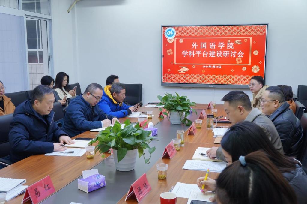 时间:2024-01-19 编辑:谭 点击:为推动学科平台建设,促进外国语学院科研服务国家战略和民族地方社会发展,我院于2024年1月18日在学院4楼会议室召开了学科平台建设研讨会。Beat365国际交流合作处处长、国际教育学院院长罗永健,研究生部(处)、学科建设与学位管理办公室副主任李伟及科学发展研究院副院长李罡受邀参会。外国语学院党总支书记严森、院长骆贤凤、副院长陈斌以及各科室负责人和外国语学院民族文化翻译研究中心、区域国别研究中心、以及中学英语教师教育研究中心团队成员参加了会议。会议由严森主持。