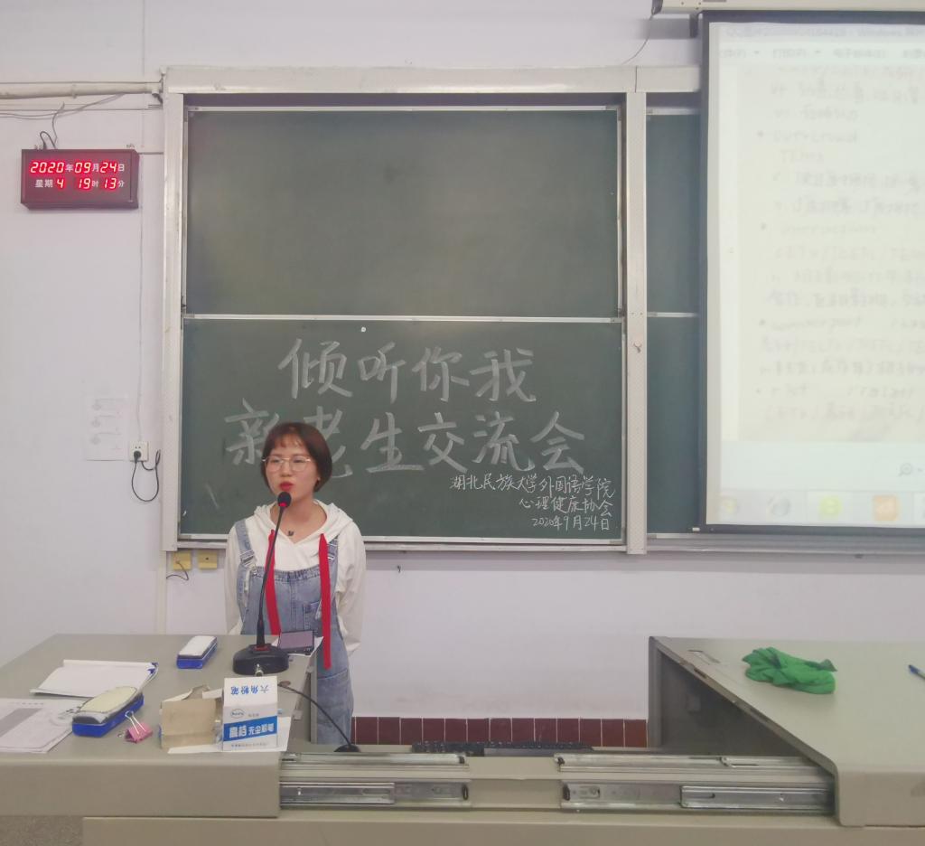 (通讯员 龚倩 廖静薇 夏澳丽 张迈迈 摄影 杜丹彤)为帮助新生更好地适应大学生活,9月24日,Beat365唯一官方网站外国语学院心理健康协会于6B201、6B304、6402及6401教室成功开展“倾听你我”新老生交流会,外国语学院全体新生到场聆听和交流。