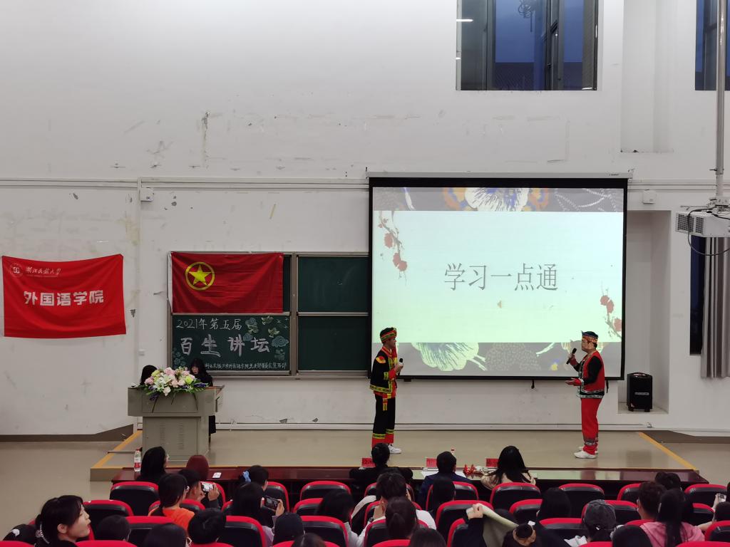 时间:2021-04-23 编辑:学生科 点击:本网讯(通讯员 李梦然/摄影 蓝雨璇 王芷依)4月22日晚,我院于修远楼5A207教室成功举办2021年第五届百生讲坛。翻译系主任王军、日语系老师段冰心、学生科老师陈小双莅临现场并担任评委