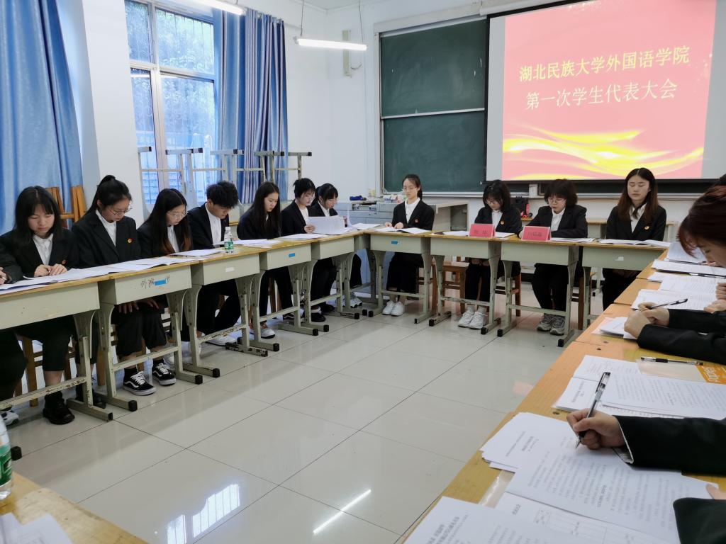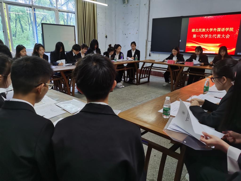 各代表团前往各分会场进行会议。随后,各代表团团长向主席团报告讨论结果,主席团进行第二次会议,审议通过并提交于大会。在大会第二次全体会议中,主席团候选人进行竞职演讲。最终,文涵、胡依依和黄梦真入选为外国语学院学生会第一届主席团成员,马丽等13名学生代表参加Beat365学生代表大会。