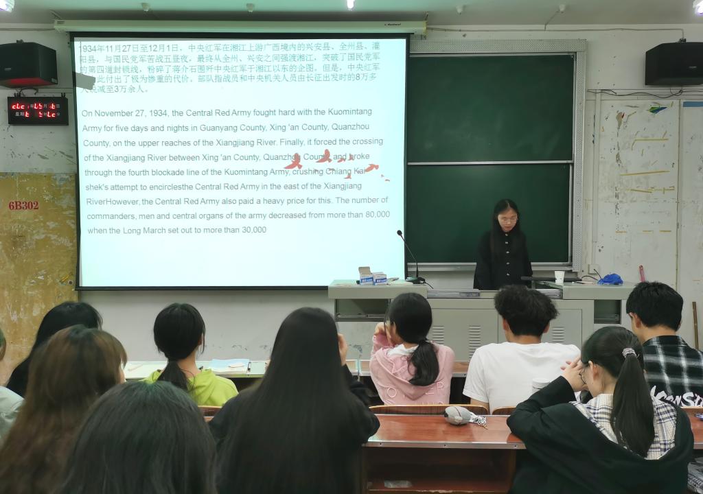 第八讲以“血战湘江,遵义转折”为主题,通过对湘江战役、遵义会议的学习,让同学们铭记历史,奋发有为,坚定理想信念。