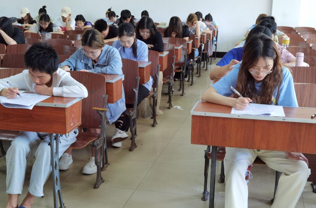 学院负责人准备好试卷、答题卡、听力音频等材料。考试开始前10分钟,监考人员核对并下发考试材料,同时大致讲述了考试流程和考试时需要注意的问题。考试过程中,同学们自觉遵守考场纪律,认真答题,考试进行顺利。考试结束后,所有答题卡被统一收回,试卷由同学们自行带回。