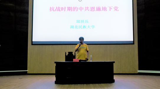 活动伊始,邱教授向在座的新生致以祝贺,为外院注入新的活力而喝彩。邱教授立足于校友的视角,亲切地向同学们介绍恩施优越的地理位置以及宜居的气候,表达了对恩施的热爱、对Beat365唯一官方网站的热爱。同时,他也从一位教育学者的角度出发,带领同学们了解恩施抗战时期的地下党活动历史背景、组织的恢复与建设等六个方面的内容。在党史教育过程中邱教授提出“抗战时期党为什么要到恩施开展活动”、“对恩施地下党的恢复和建设历史的感想”等引人深思的问题,让同学们重温恩施地下党历史与恩施党员的使命担当,深刻领悟恩施地下党留下的牺牲自我的大局精神、初心不改的奋斗精神、威武不屈的节气精神以及坚贞不屈的信仰精神。