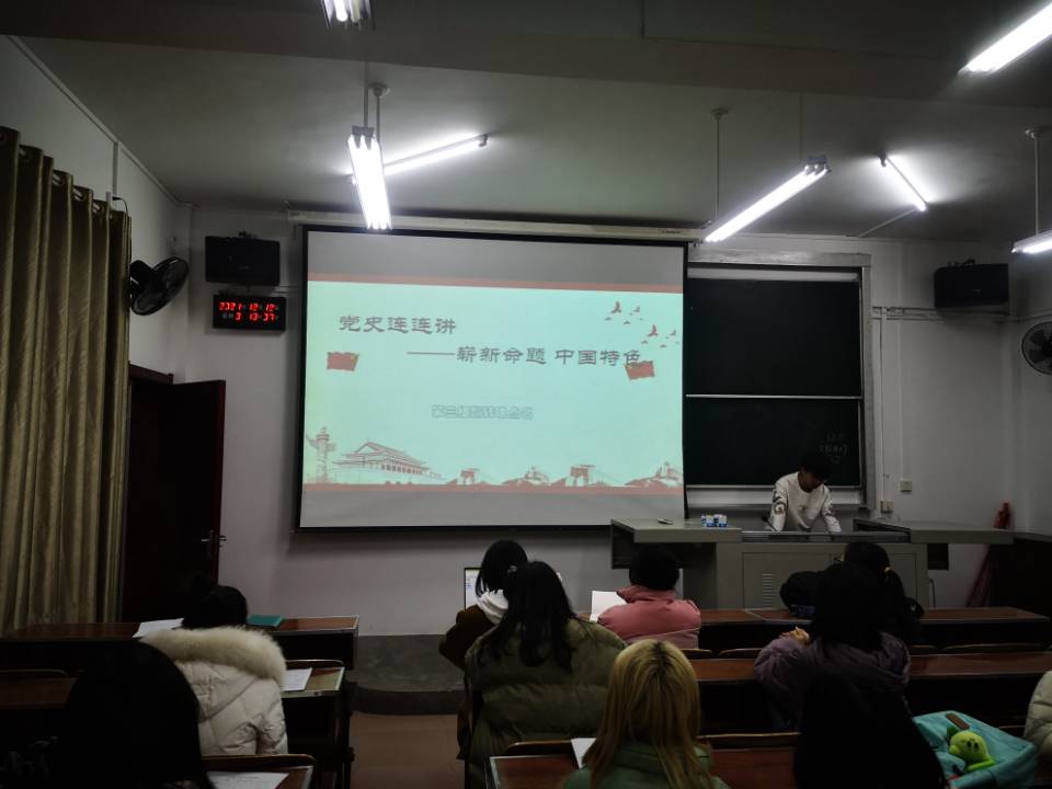 主讲同学从此次会议的背景、内容和意义三个方面进行论述,在介绍完十一届三中全会召开的背景后,主讲同学带领同学学习会议内容:会议彻底否定了“两个凡是”的方针,重新确立解放思想、实事求是的思想路线;停止使用“以阶级斗争为纲”的口号,作出把党和国家的工作重心转移到经济建设上来,实行改革开放的伟大决策;会议实际上形成了以邓小平为核心的党中央领导集体。同时十一届三中全会也具有着极为重大的历史意义,以这次全会为起点,我国从此进入改革开放和社会主义现代化建设的历史新时期。在整个党史学习活动过程中,全体同学认真学习和领悟着党的全会精神,充分展现我院学生一丝不苟的学习态度。最后,学生科老师粟登平希望全体同学能够牢记十一届三中全会的内核与精神,做到内化于心,外化于行;牢记历史使命与责任,积极展望未来。