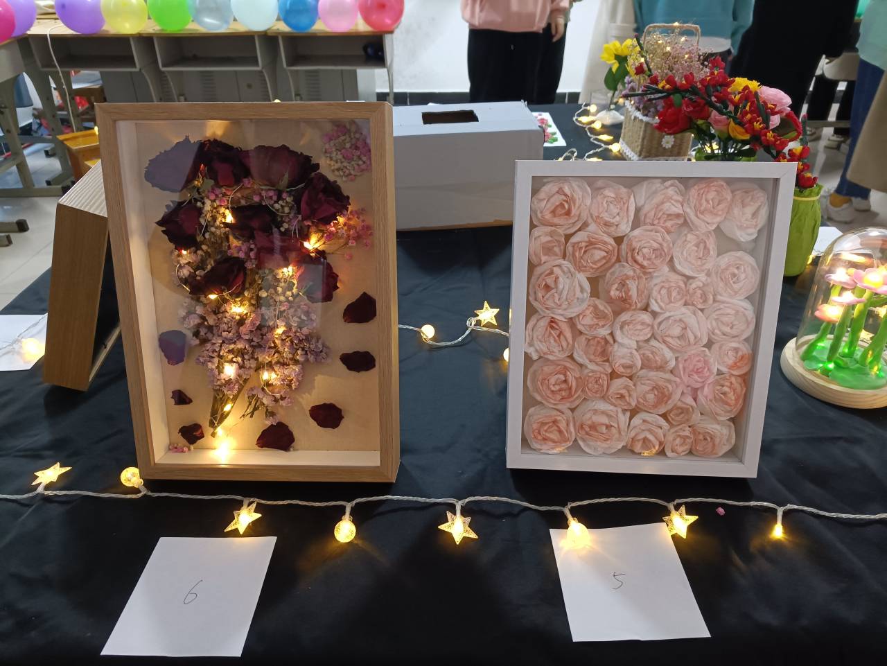 大赛由前期,经工作人员评选出10份作品入围决赛,并进行展览,从而进行投票。此次活动包括游戏互动、参观展品、大众投票三个环节。组织人首先借助游戏来吸引同学们的注意力,调动同学的兴趣。其中折纸飞机,你画我猜等活动深受同学欢迎,现场充满欢声笑语。随后,同学参观手工艺品展,并将自己喜欢作品的号码牌,投入投票箱中。在众多作品中,马春红的剪纸作品,让人印象深刻。其作品以白色为底色,与红色京剧人物剪纸相衬,紧扣中华民族传统文化,富有传统元素,获得无数评委的青睐。