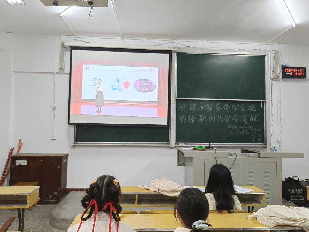 时间:2022-04-19 编辑:曾小玉 点击: 本网讯(通讯员 李梦然 摄影 刘婷)4月18日晚,我院于晚点名教室开展以“树牢国家总体安全观,感悟新时代安全成就”为主题的安全教育活动。通过播放“心系国家安全 青春捍卫中华”的宣讲视频,增强同学对国家安全知识的了解。