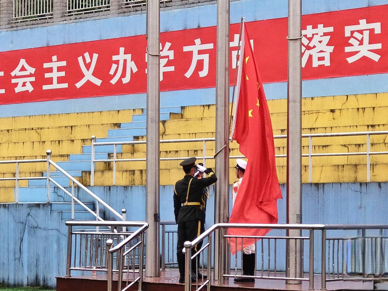 在雄壮的国歌声中,国旗护卫队缓缓升起国旗,全体同学齐唱国歌,行注目礼,拉开团日活动的序幕。