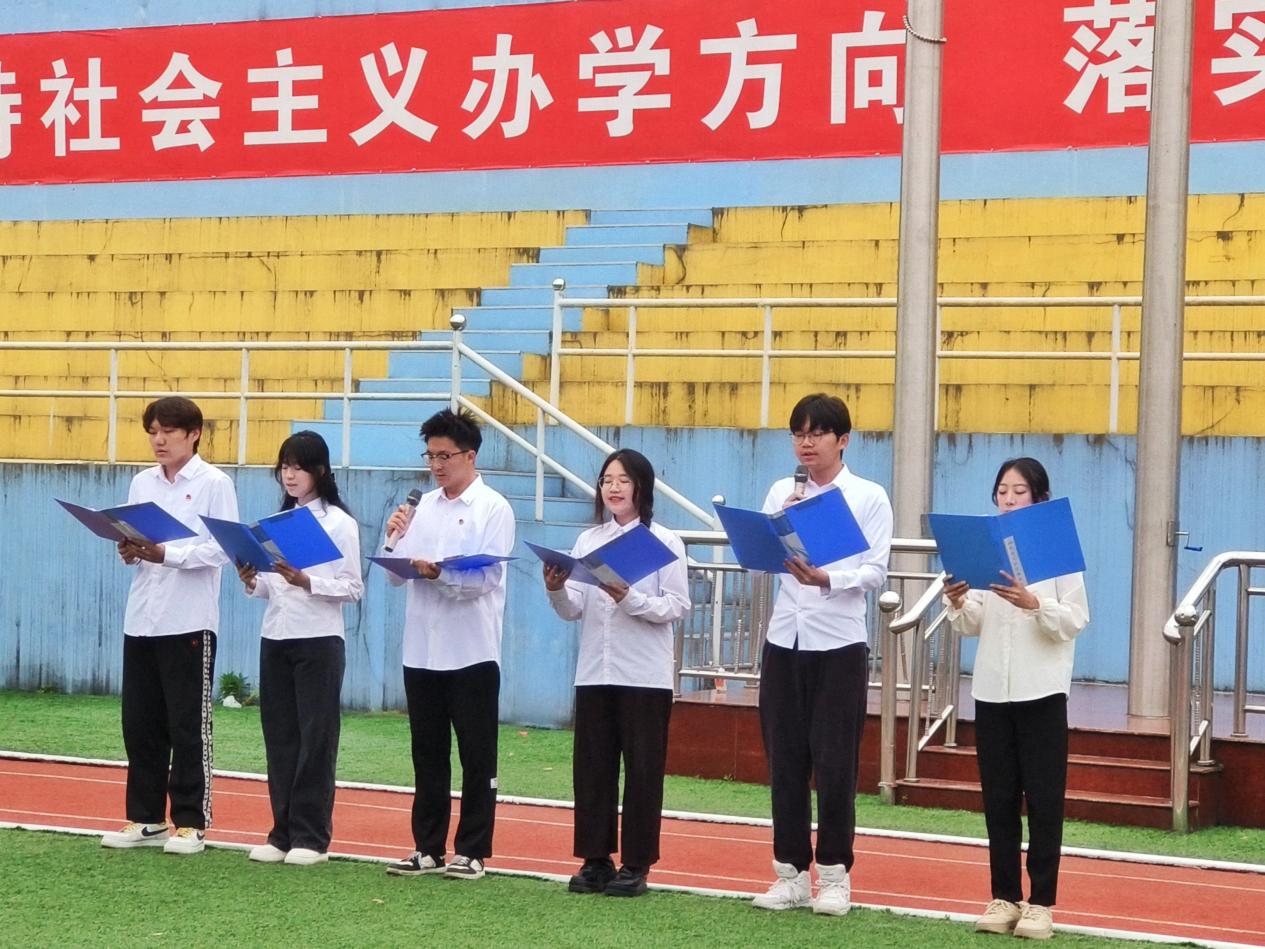 强国复兴,青年挺膺。主持人黄欣悦同学带领全体成员面向团旗,重温入团誓词:“我志愿加入中国共产主义青年团,坚决拥护中国共产党的领导……”铮铮誓言下,同学们再次重温团员的责任与义务。