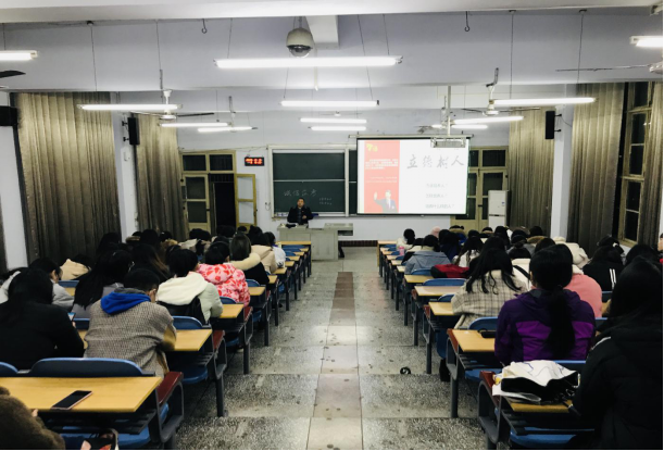 12月13日晚,恩施市龙凤镇龙马民族学校校长王书海在外国语学院6401教室为18级英语专业150多名学生做了一场题为“用自己的微光照亮学生前行的路”的精彩讲座。本场讲座由英语系副主任舒婧娟主持。