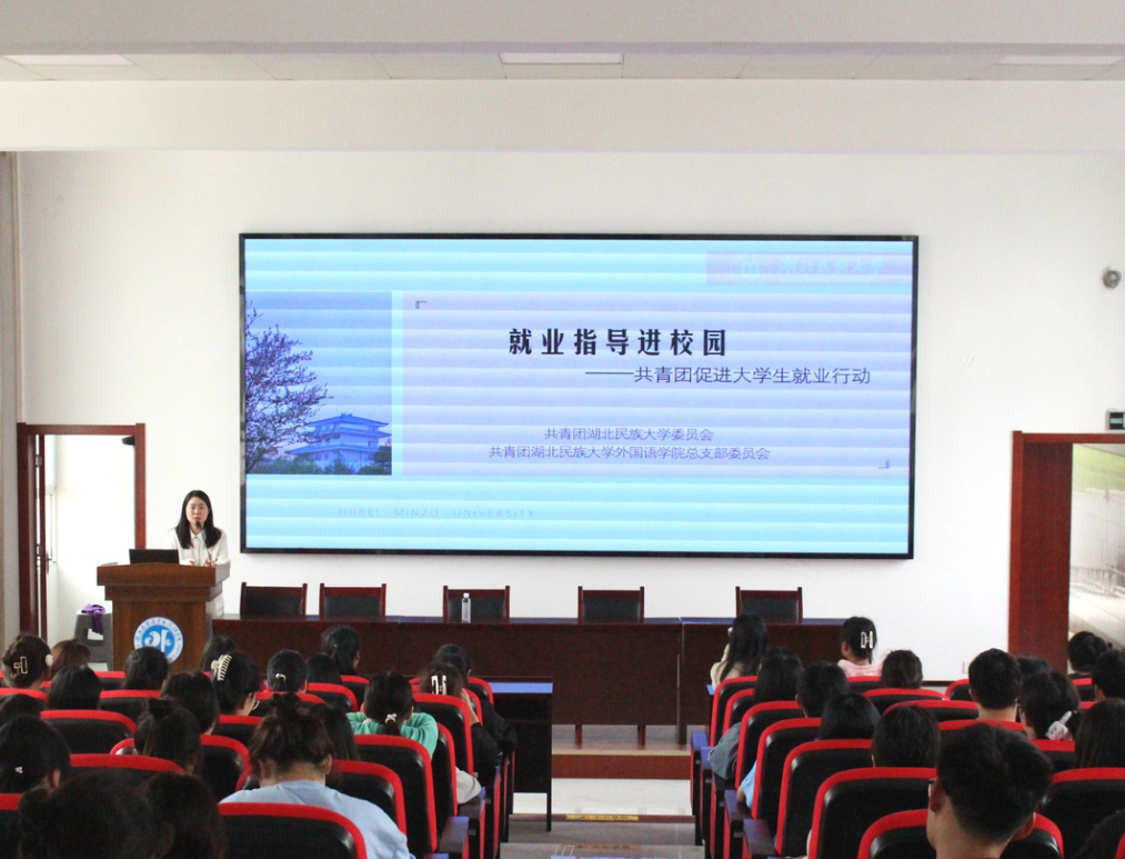 团团微就业,高校在行动。为进一步帮助Beat365学生树立就业观念,拓展就业视野,校团委、外国语学院团总支于5月4日在文汇楼6402报告厅举行了“就业指导进校园——共青团促进大学生就业行动”讲座活动。本次活动特邀马家希望小学副校长、湖北青年五四奖章获得者、外国语学院优秀校友陈若竹作指导,100余名学生参加。