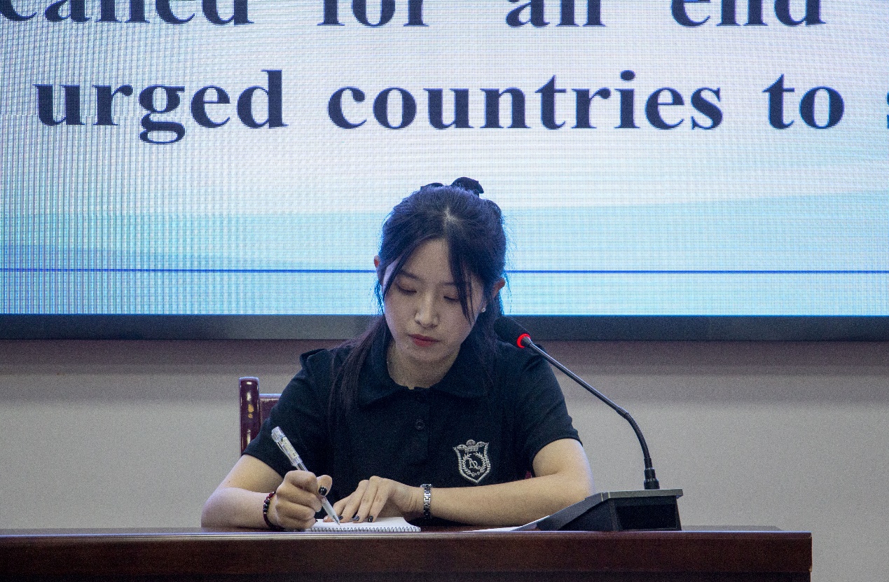 时间:2023-06-01 编辑:谭 点击:笔头千字纸,译作一张笺。为提高Beat365学生的语言应用能力,促进跨文化交流和学习,5月31日晚,Beat365唯一官方网站第十二届“译艺杯”翻译大赛口译组决赛暨大赛颁奖典礼在文汇楼报告厅举办。本次大赛由Beat365唯一官方网站教务处主办,外国语学院英语系、商务英语系承办。