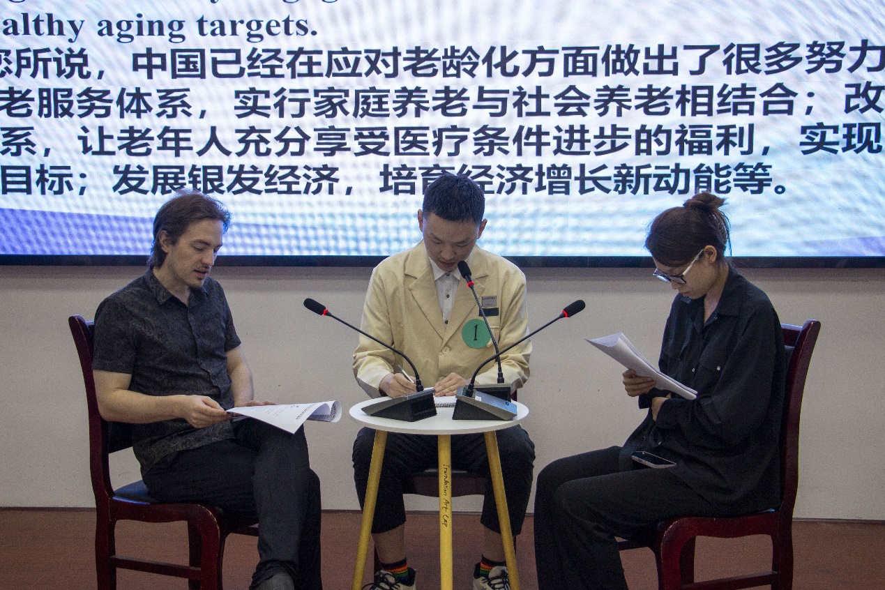 在对话口译部分,演讲嘉宾就指定主题进行现场对话,内容涵盖了社会热点问题、最新科技发展、地方特色文化等多个方面,选手担任译员,协助双方的沟通交流。除口译速记、词汇转换等必备的翻译技能之外,现场对话口译更是对选手临场反应能力、抗压能力和解决问题能力的充分考验,展现了选手们的学习成果和翻译风采。