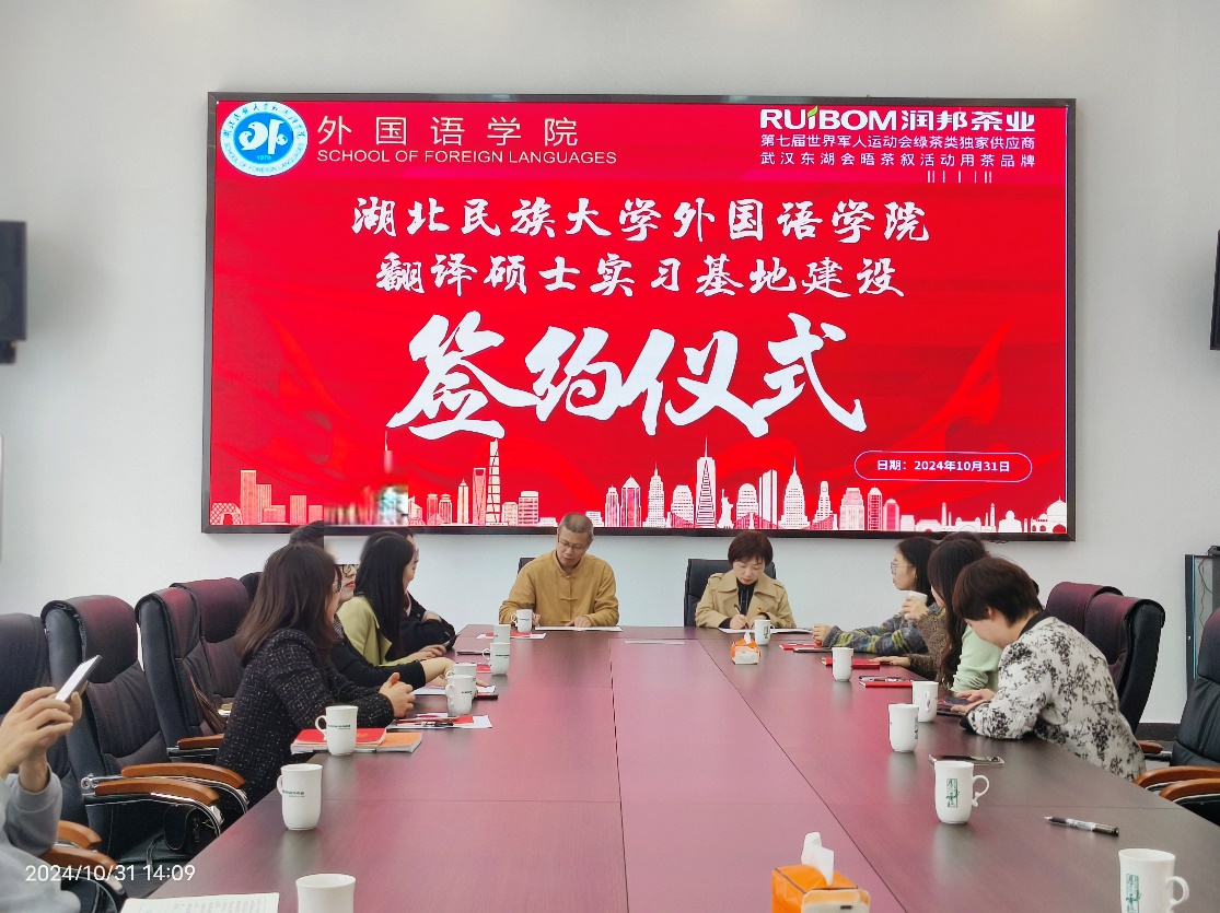 活动期间,外国语学院副院长张婷与润邦茶业主要负责人就恩施茶文化传承与发展、产学研活动开展、专业人才培养、学生实习与就业等方面进行了深入交流。随后,学院副院长张婷与润邦茶业董事长张文旗签订翻译硕士实习基地建设协议。