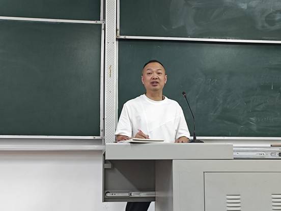 最后,谭永胜进行首次知识讲解。他以书法教学为例,系统讲解基本笔画的书写规则,并进行现场演示。他的认真教导让同学们受益匪浅。