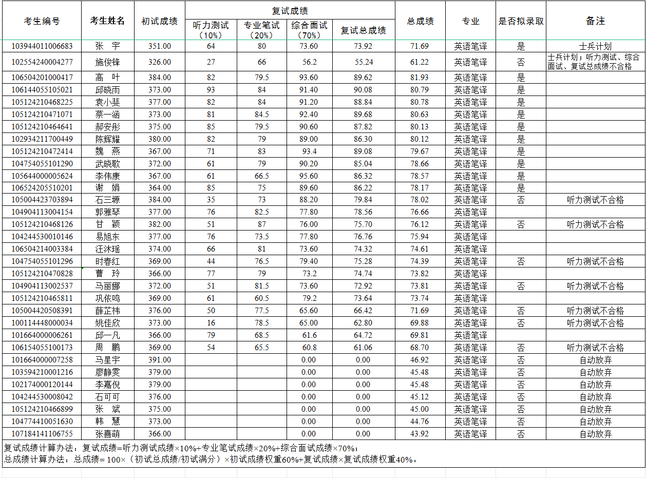 Beat365唯一官方网站外国语学院2024年硕士研究生招生调剂考生复试名单及安排