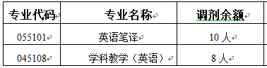 3. 调剂考生第一志愿报考专业与我院招生专业相同或相近。“英语笔译”只接受报考(055100)翻译硕士、(055101)MTI英语笔译、(055102)MTI英语口译、(050201)英语语言文学学术硕士、(050211)外国语言学及应用语言学学术硕士的考生调剂申请;“学科教学(英语)”只接受报考(045108)学科教学(英语)的考生调剂申请。
